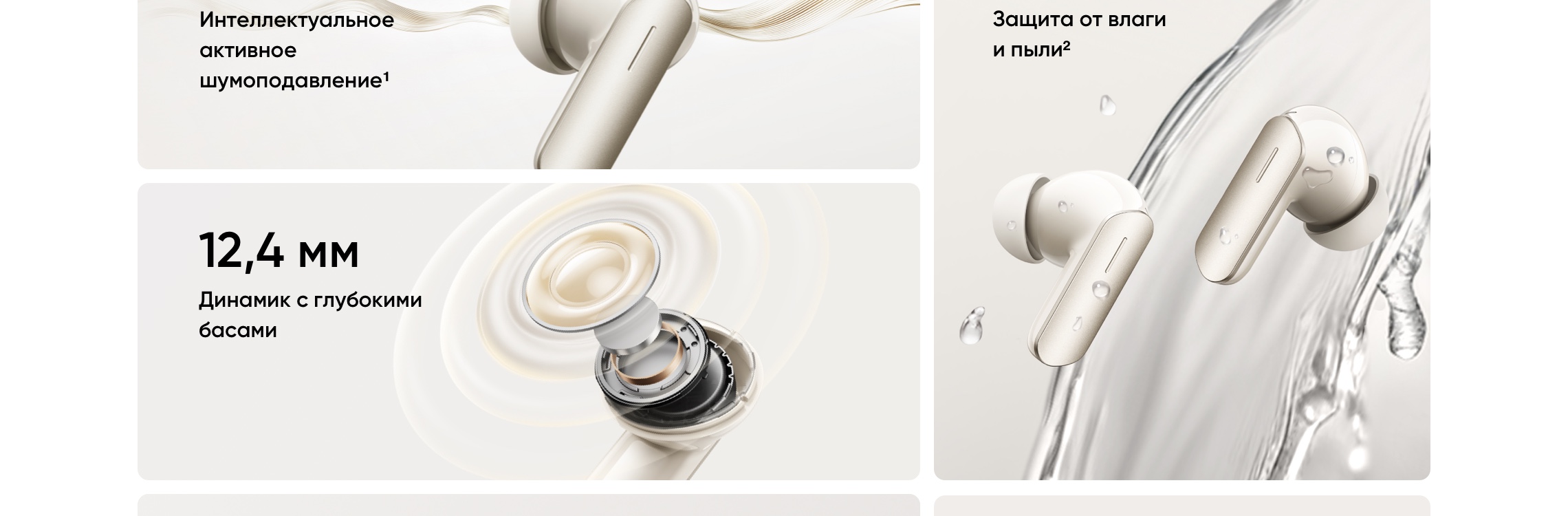 - Функции управления: активация шумоподавления, активация режима прозрачности, активация голосового помощника