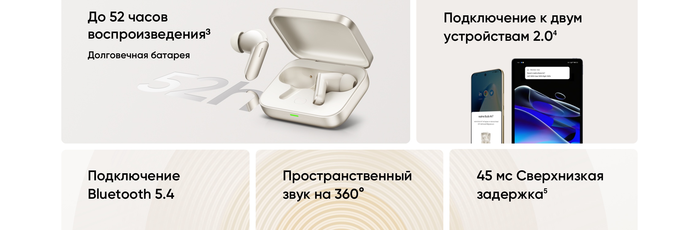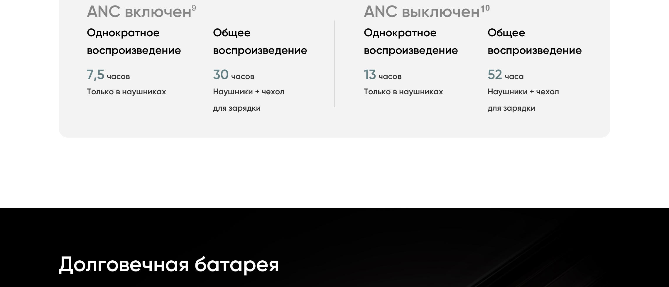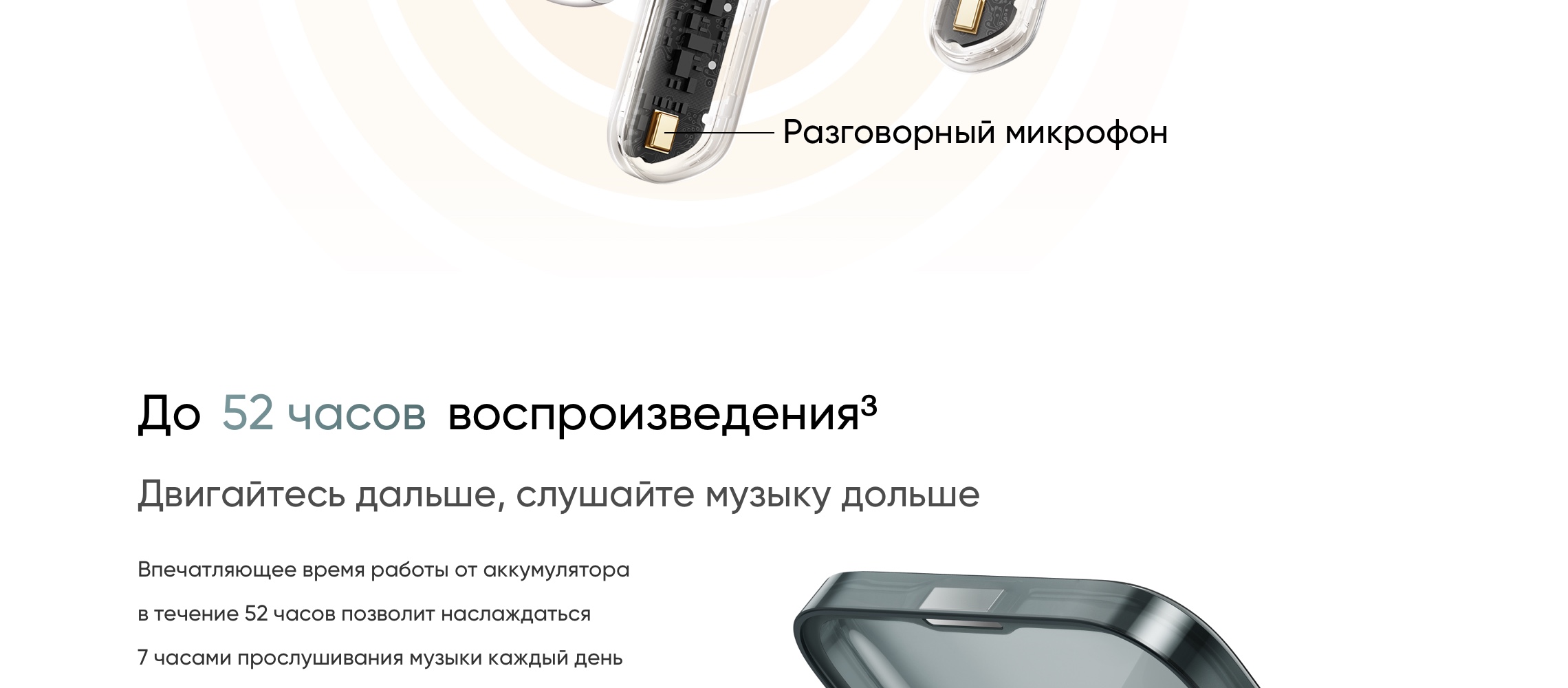 - Время работы с зарядным кейсом: 52 ч (без использования ANC)