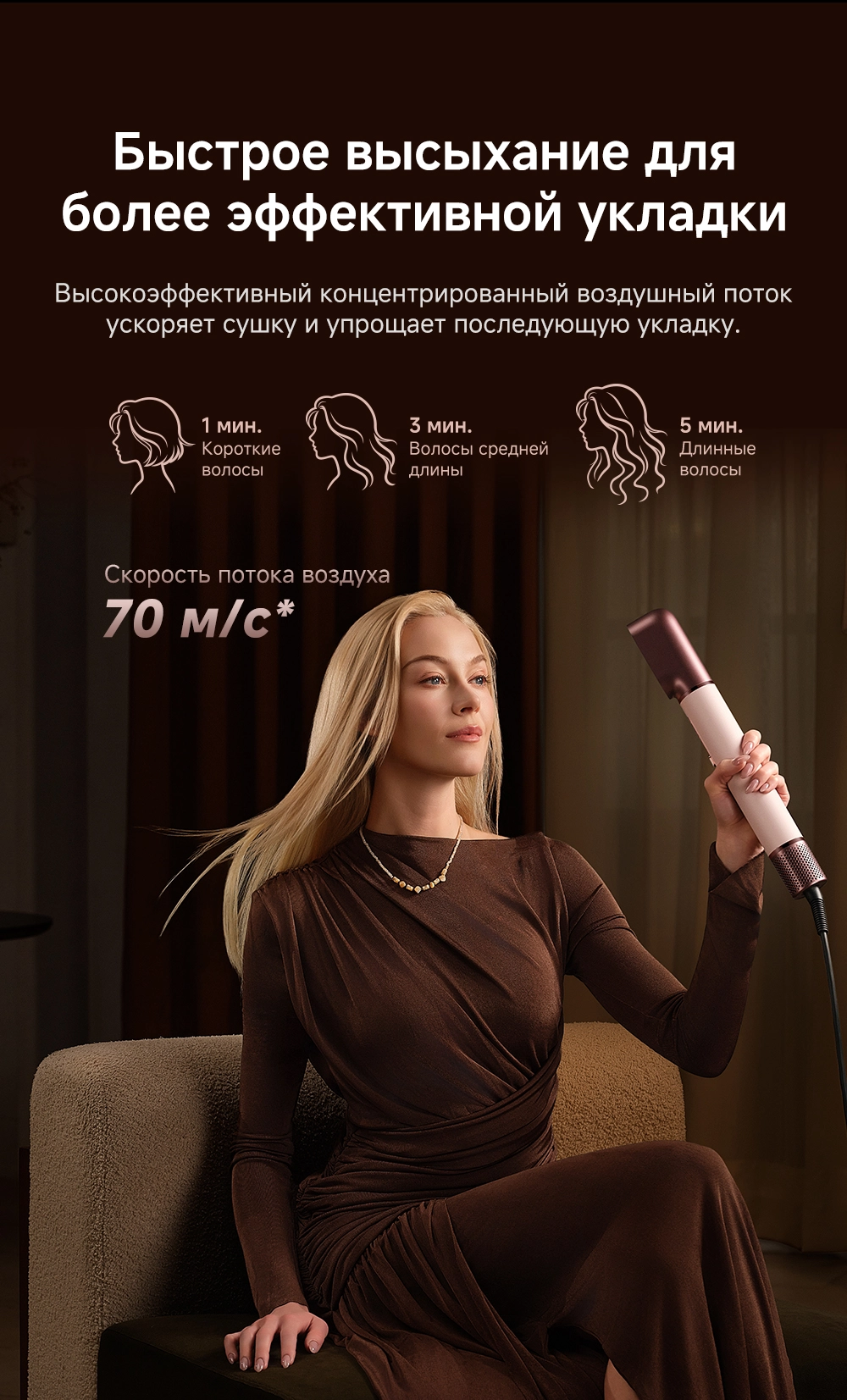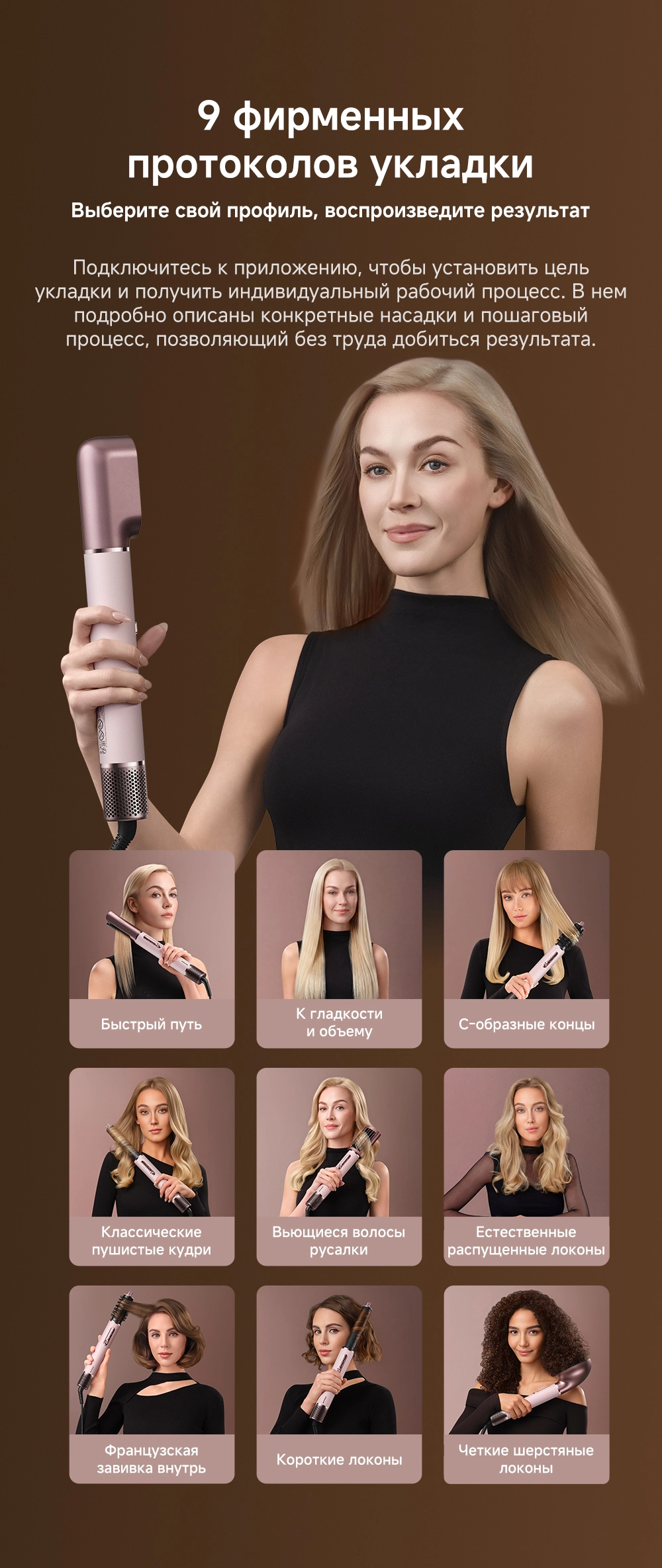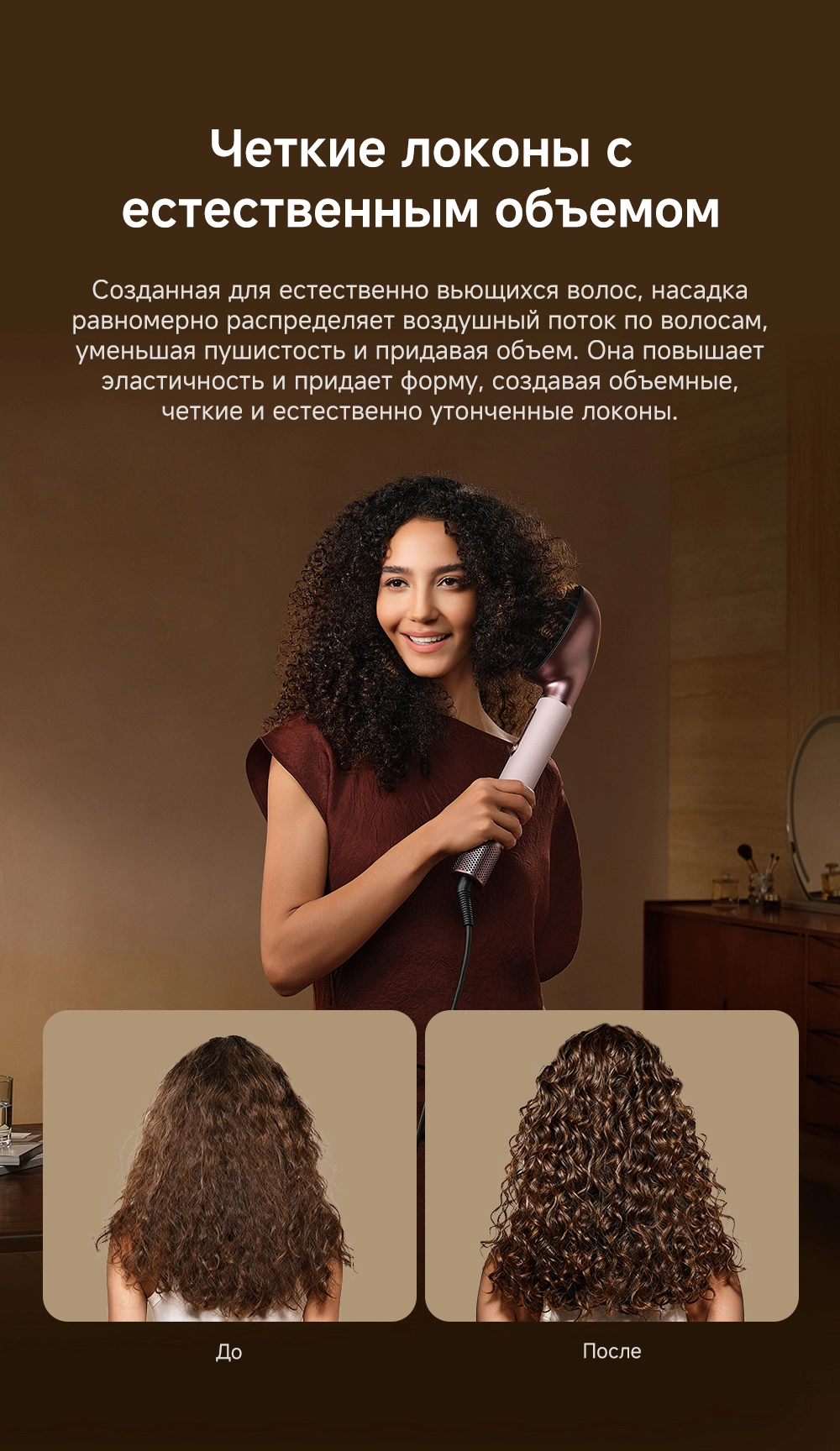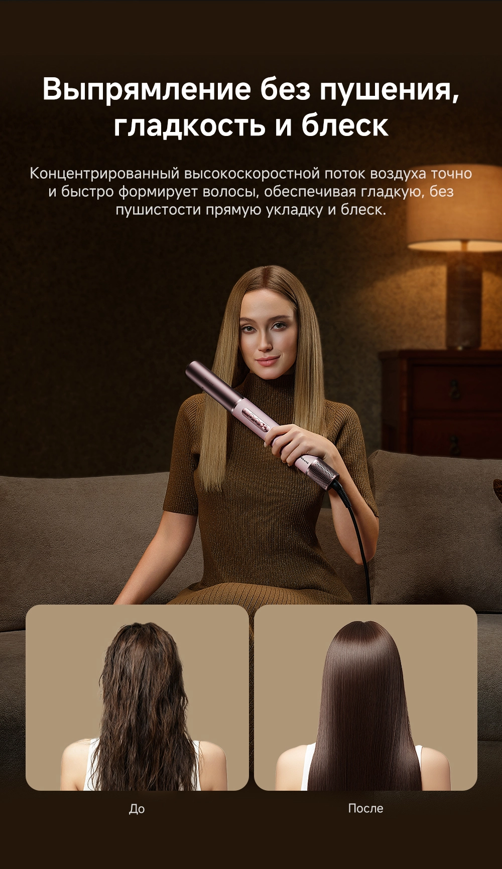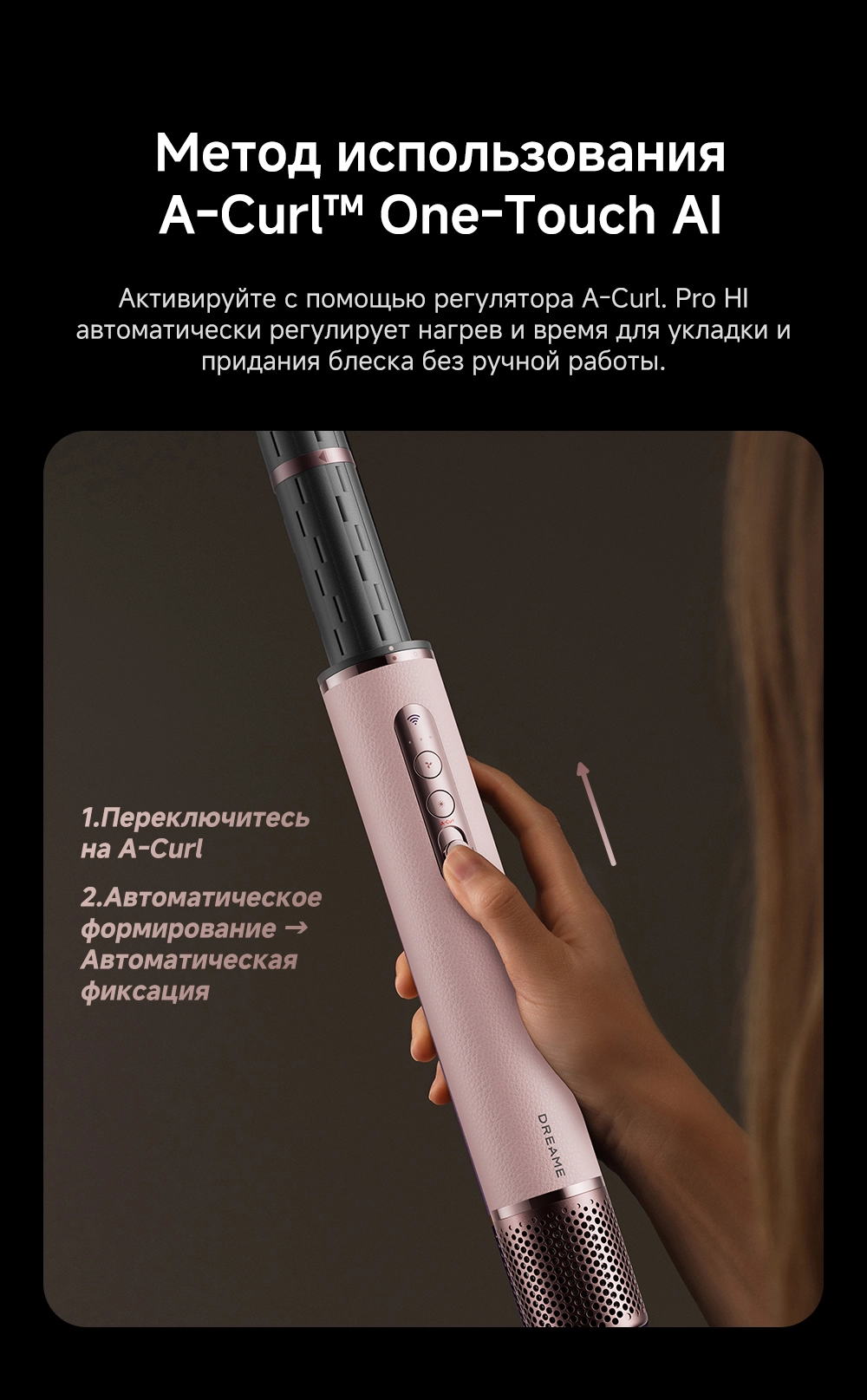 - Особенности: Высокая скорость воздушного потока - 70 м/с. 8 профессиональных насадок. AirStyle Pro HI проверяет температуру до 1000 раз в секунду с помощью NTC термистора и поддерживает стабильный безопасный воздушный поток. Мощный направленный поток воздуха. Двухслойный входной воздушный фильтр: внутренняя сетка из нержавеющей стали задерживает мелкие частицы, а внешняя предотвращает их спутывание. Антизапутывающийся кабель с вращением 360°. Текстурированное покрытие корпуса из мягкой зернистой кожи. Фирменное приложение Dreamehome анализирует тип волос и предпочтения, предлагая персональные решения для укладки.