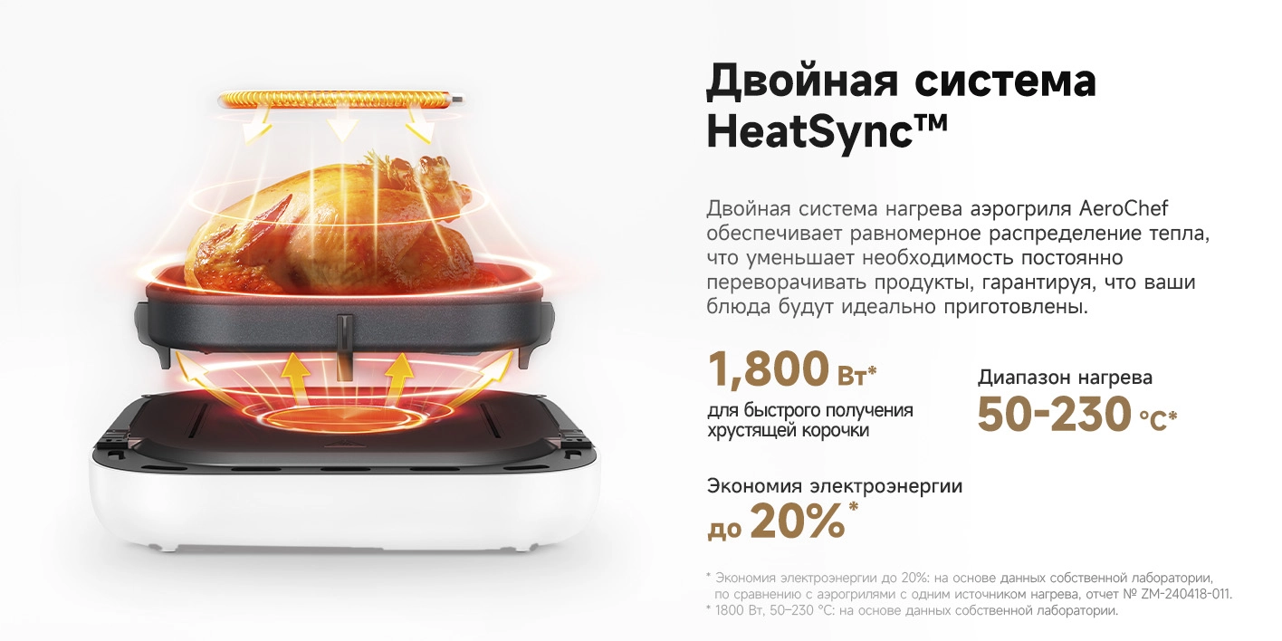 - Особенности: Благодаря использованию двойной системы нагрева сверху и снизу, FD10 Pro обеспечивает более равномерную выпечку, по сравнению с одним источником нагрева, и позволяет экономить до 20% энергии. Это приводит к значительному снижению или даже полному устранению необходимости переворачивать еду