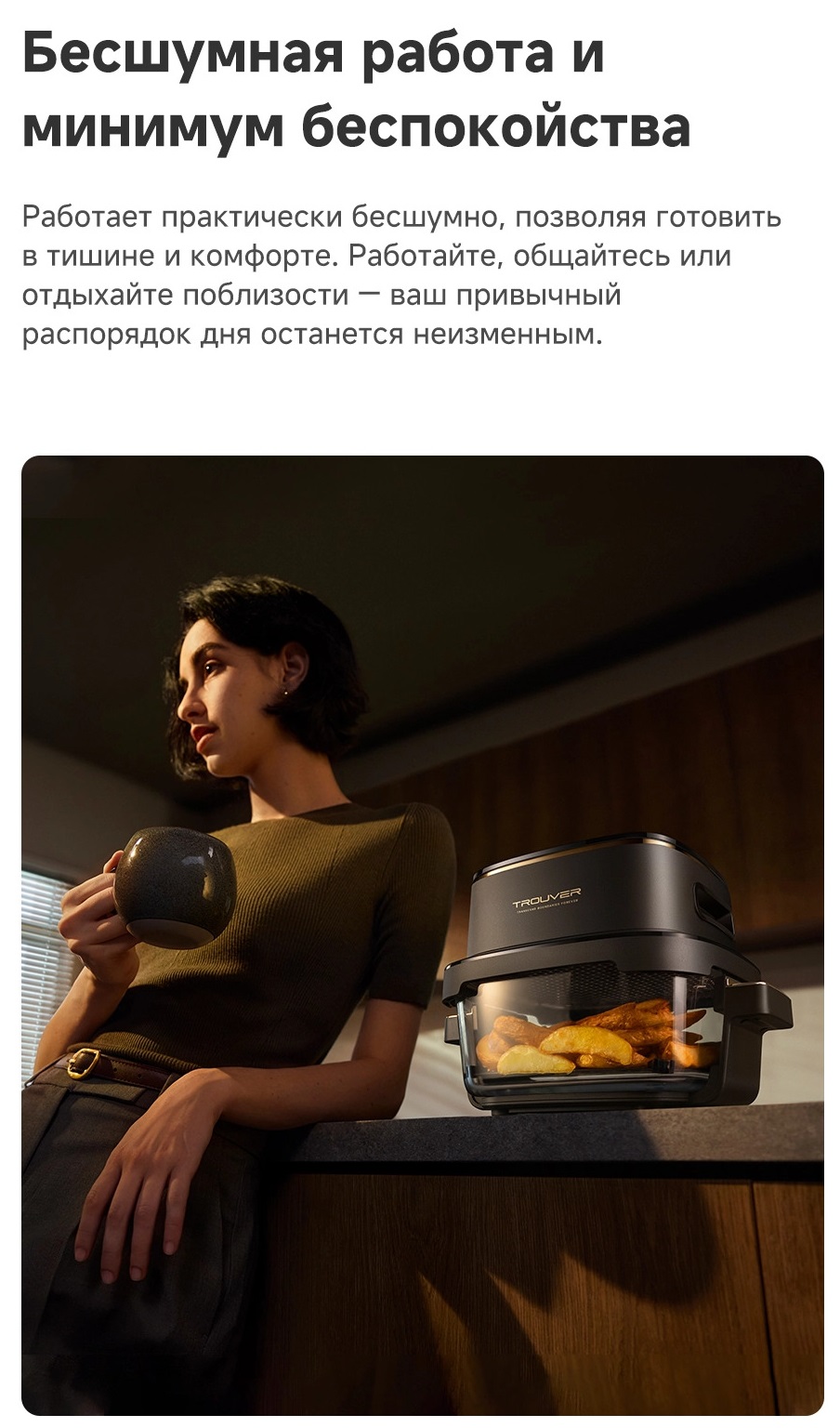 Работает практически бесшумно, позволяя готовить в тишине и комфорте. Работайте, общайтесь или отдыхайте поблизости ваш привычный распорядок дня останется неизменным.