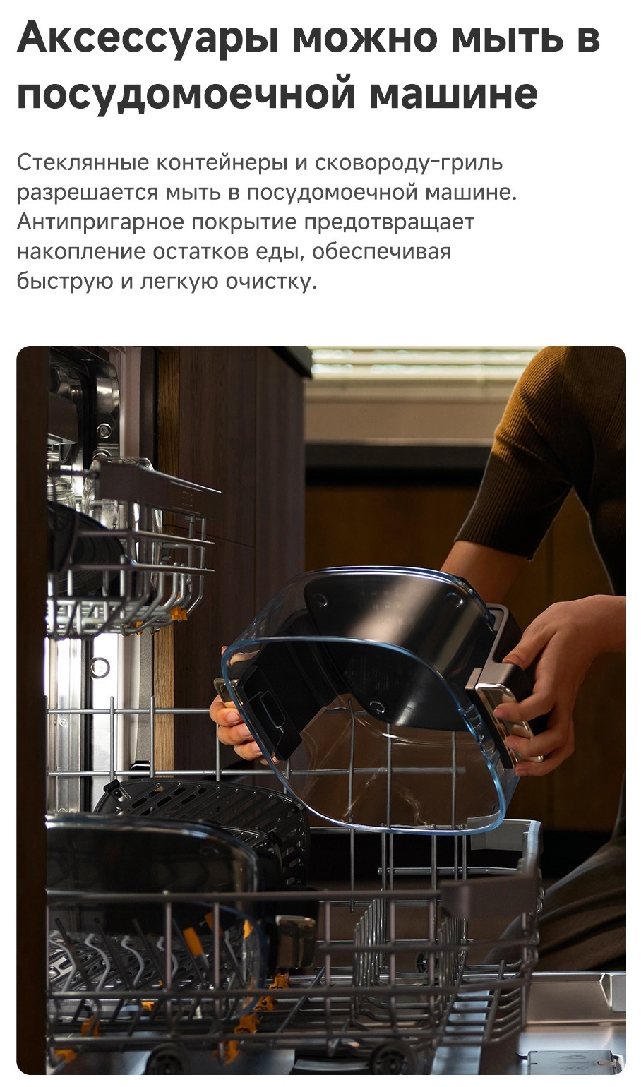 Стеклянные контейнеры и сковороду-гриль разрешается мыть в посудомоечной машине.