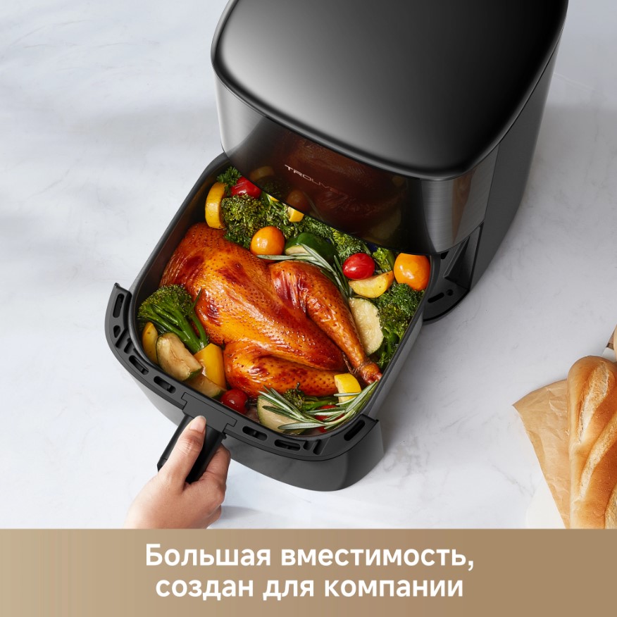 Аэрогриль с мощностью 2000 Вт и ёмкостью чаши 6 литров.