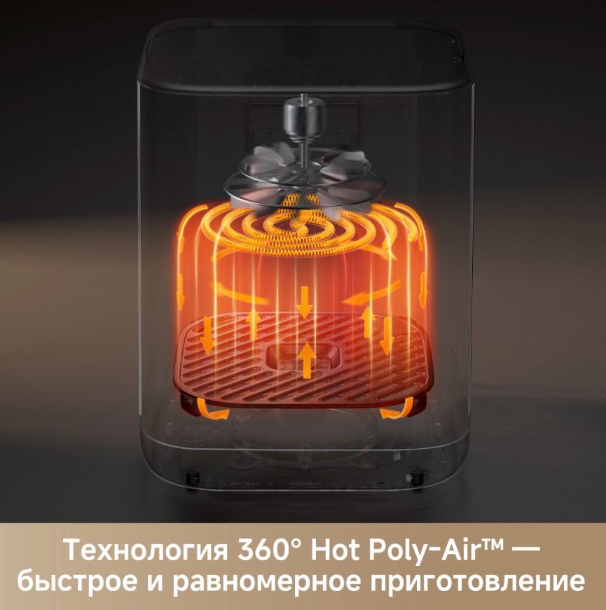 Trouver Air Fryer FD10s Pro оборудован системой 360° Hot Poly-Air™, благодаря которой воздух циркулирует равномерно. Это позволяет быстро и качественно готовить еду.