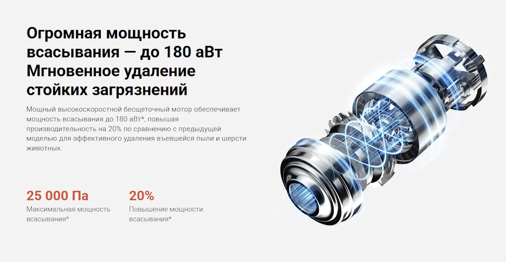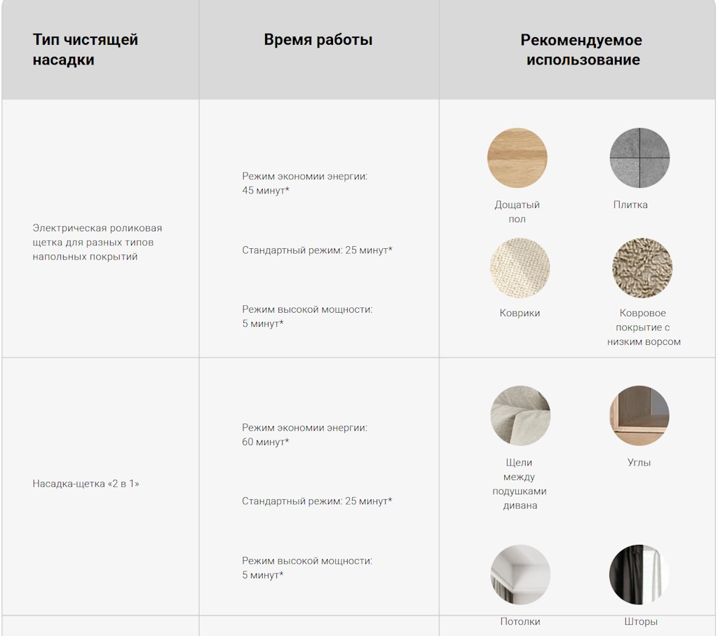 Насадка вращается со скоростью до 1500 об/мин и в сочетании с высокой мощностью всасывания отлично справляется с удалением пылевых клещей, пуха и прочих загрязнений с мягкой мебели и постельных принадлежностей.