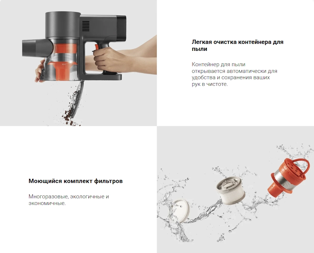 Большой пылесборник не требует частой очистки. Благодаря съёмной конструкции его можно опустошить одним нажатием — быстро и гигиенично.