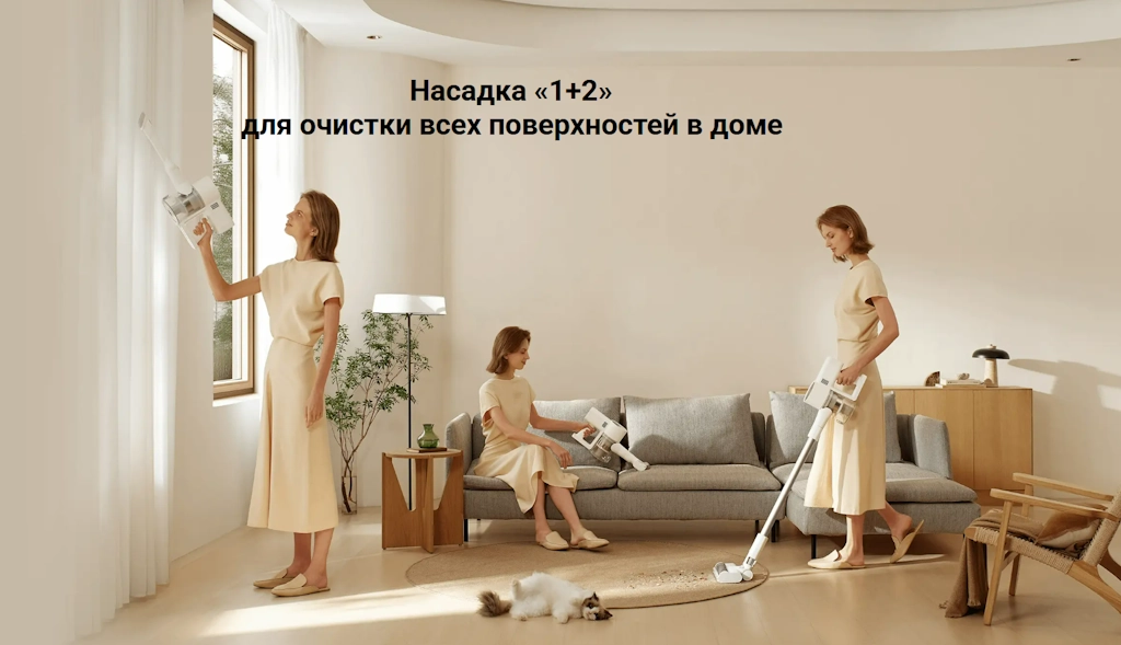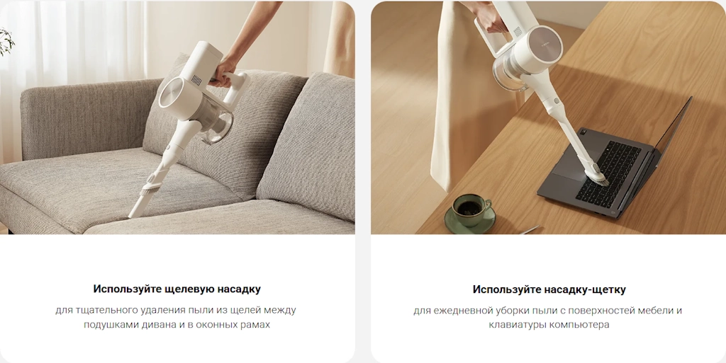 Комбинированная насадка позволяет легко переключаться между режимами для уборки в углах, на потолке, на мебели и в узких щелях. Никаких слепых зон — уборка становится удобной и универсальной.