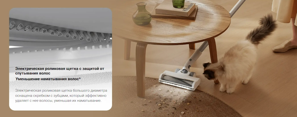 Электрическая роликовая щетка подходит для уборки на различных покрытиях — от паркета до плитки и ковров. Встроенная светодиодная подсветка помогает выявить пыль в тёмных зонах и под мебелью, обеспечивая тщательную очистку даже при слабом освещении.