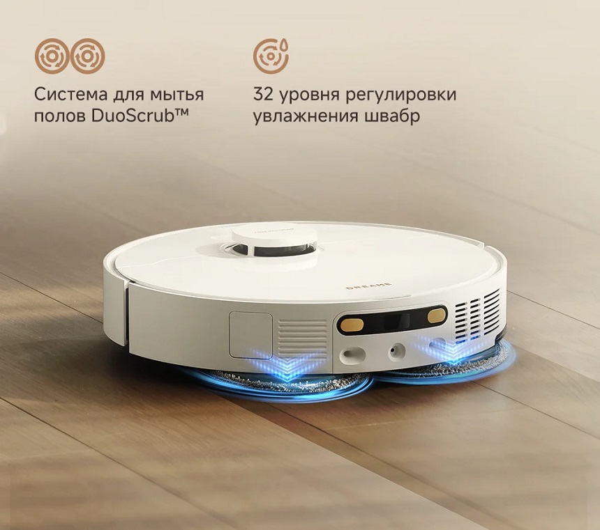 В системе для мытья полов DuoScrub™ используются 2 высокоскоростные вращающиеся швабры, которые оттирают загрязнения под дополнительным давлением. Кроме того, она поддерживает 32 уровня регулировки увлажнения швабр, чтобы ускорить высыхание пола и обеспечить комфорт для домашних животных.
