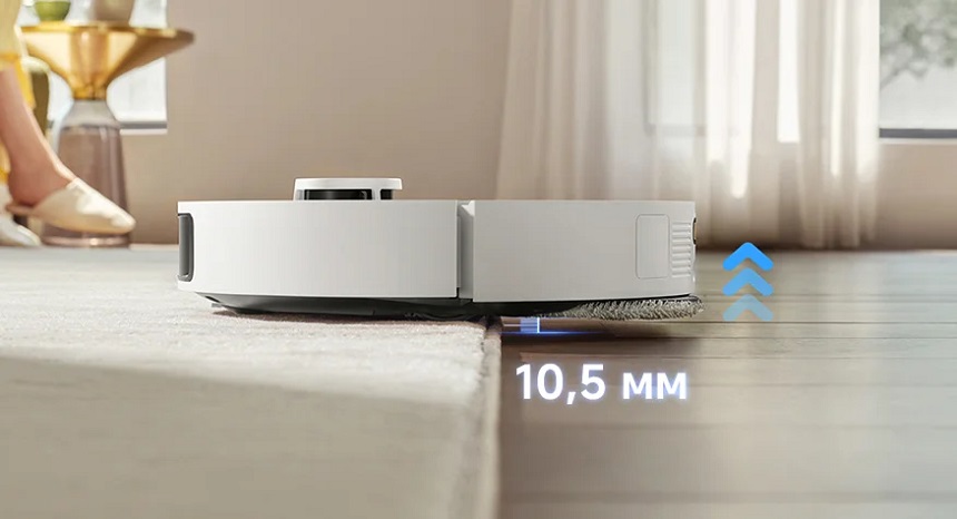 Этот робот-пылесос поддерживает специальные стратегии очистки ковров и поднятие швабры на 10,5 мм, чтобы обеспечить надлежащий уход за коврами.Интенсивная очистка ковров, объезд ковров, проезд по коврам.