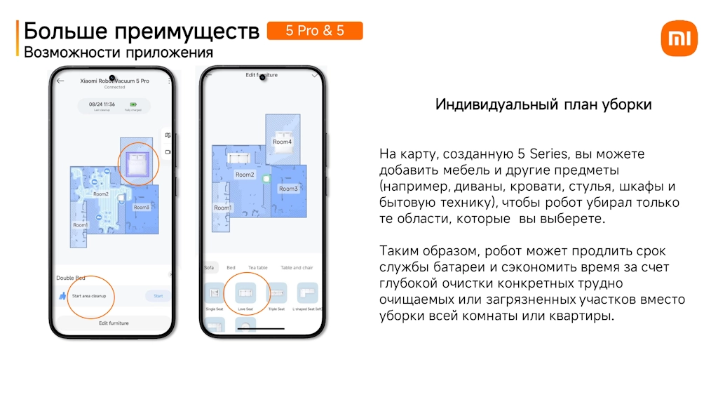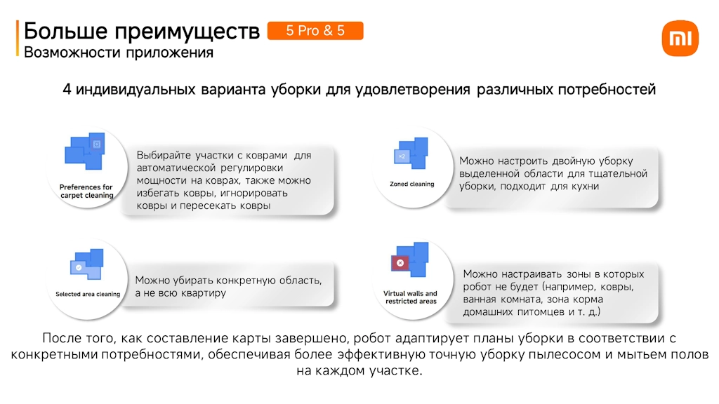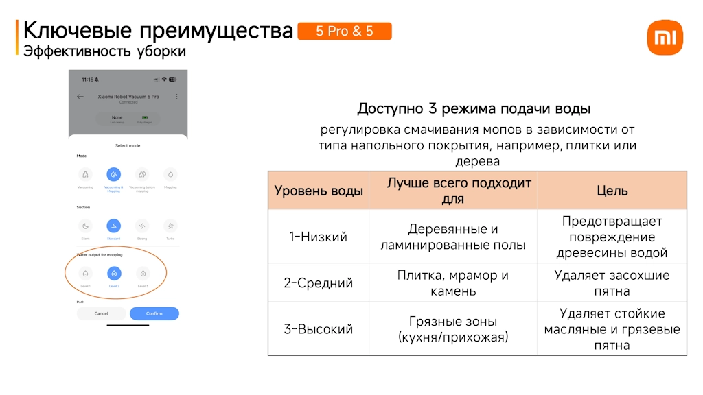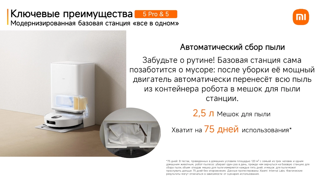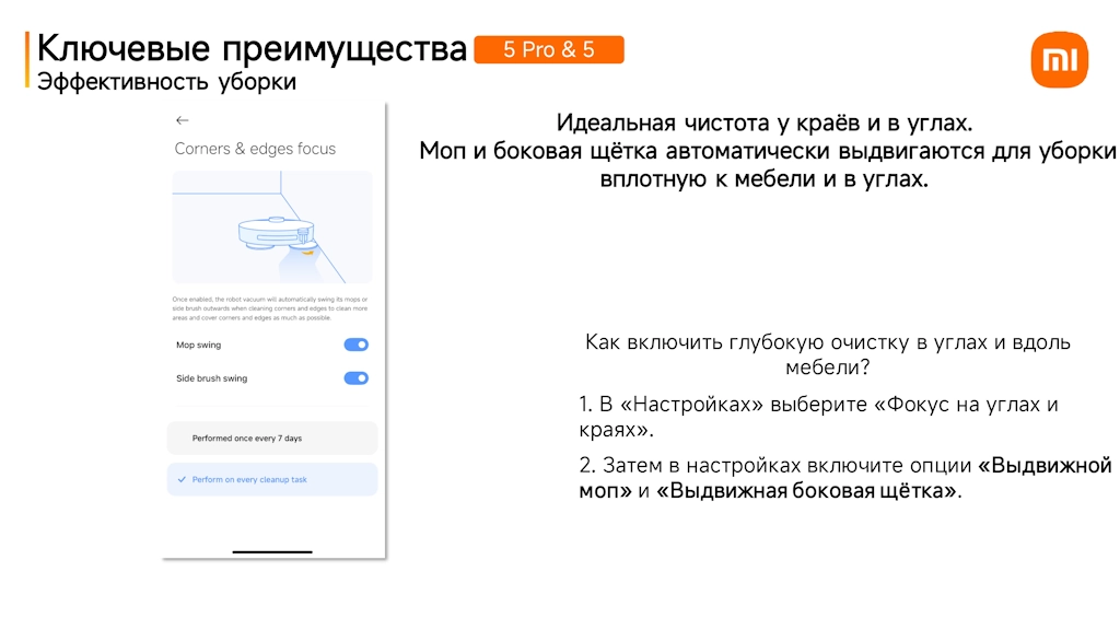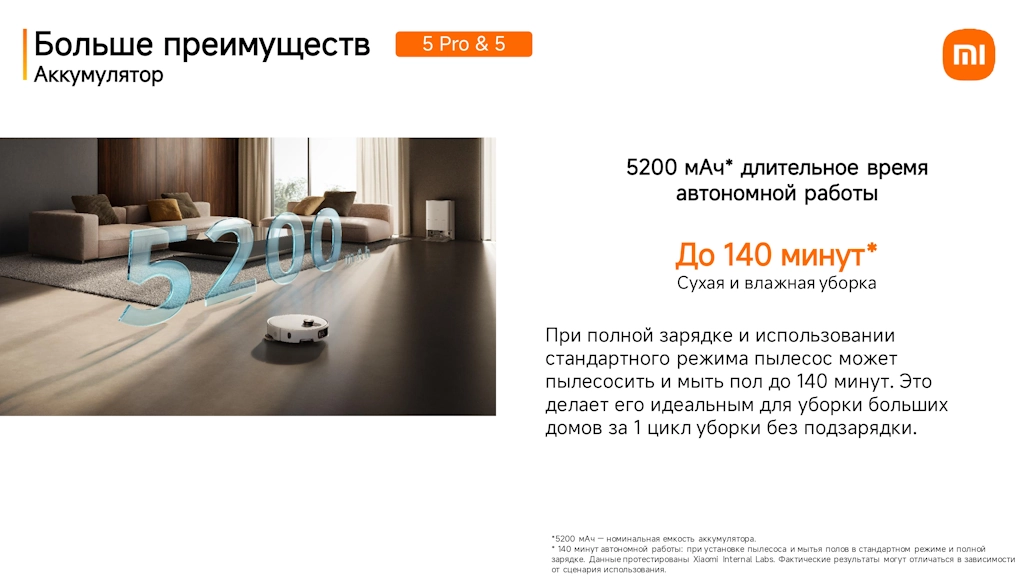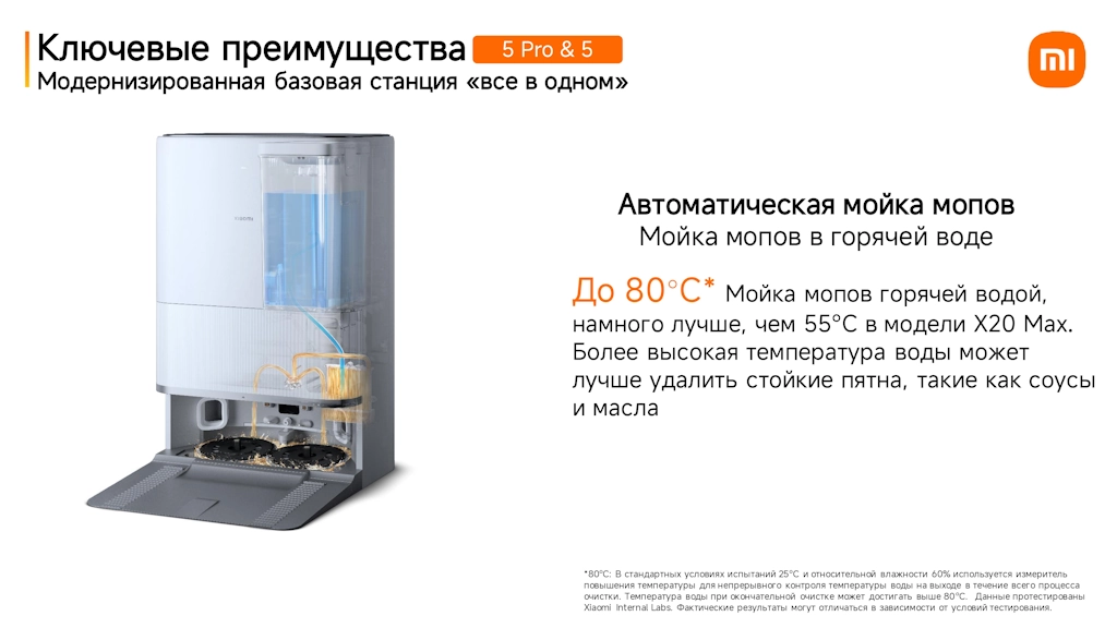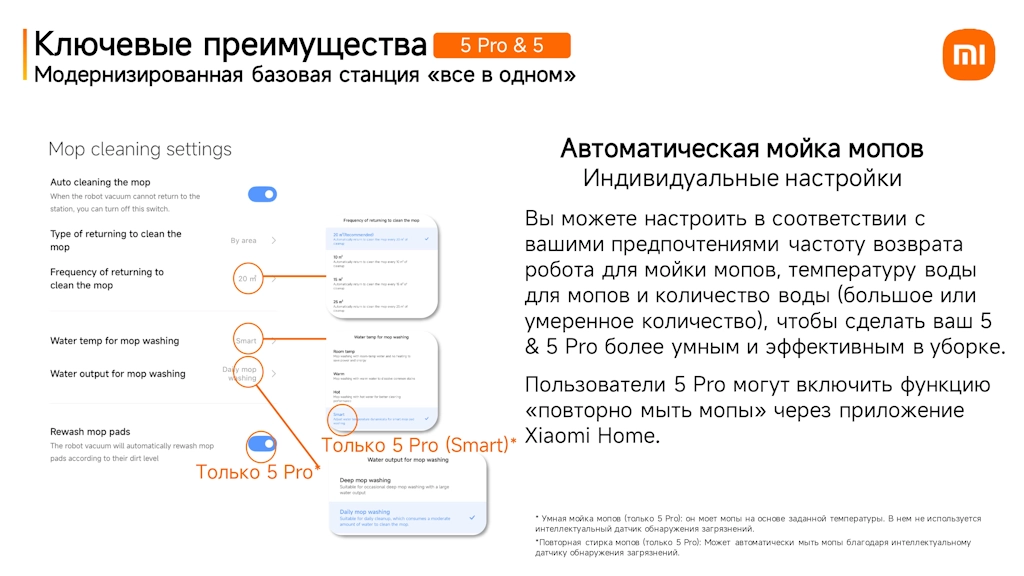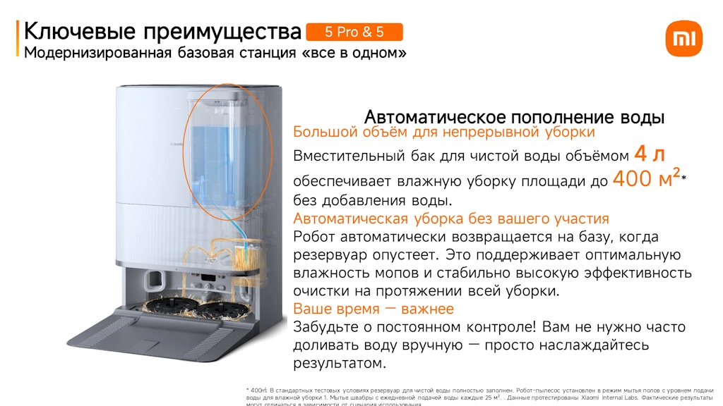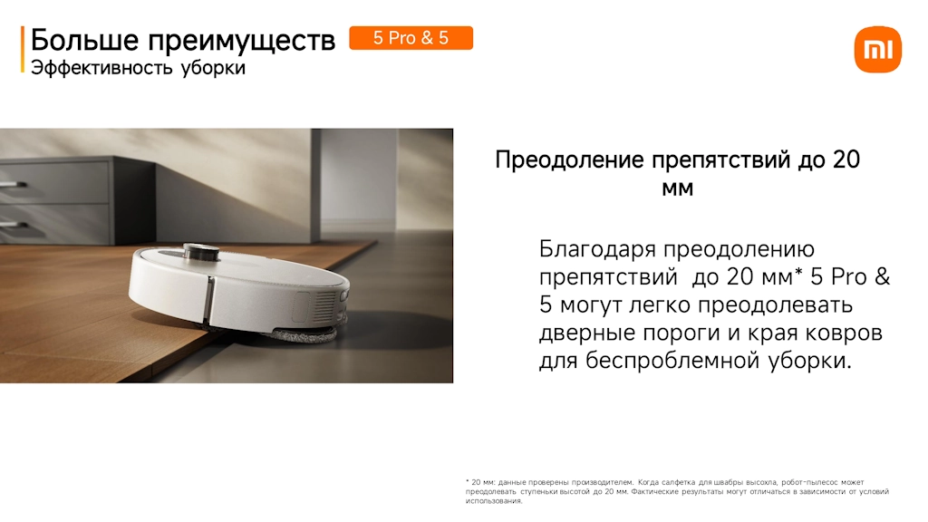- Особенности: выдвижной dToF-лидар, подъемная швабра (15 мм); преодоление порога: до 20 мм; основная и боковые щетки с системой против запутывания волос и шерсти, выдвижной моп и боковая щетка; голосовое управление, управление через приложение Mi Home/Xiaomi Home
