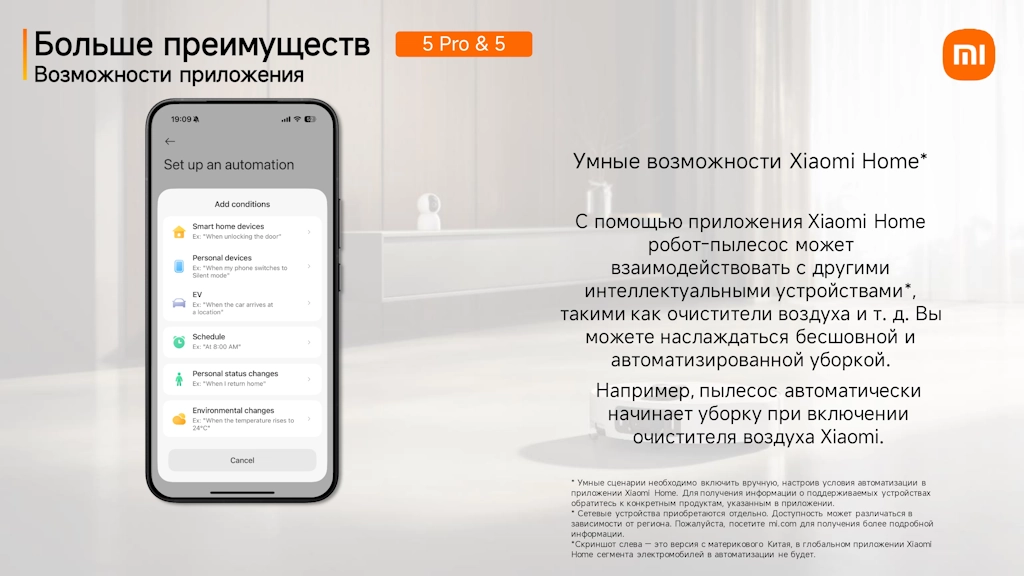 - Дистанционное управление: да, мобильное приложение Mi Home/Xiaomi Home